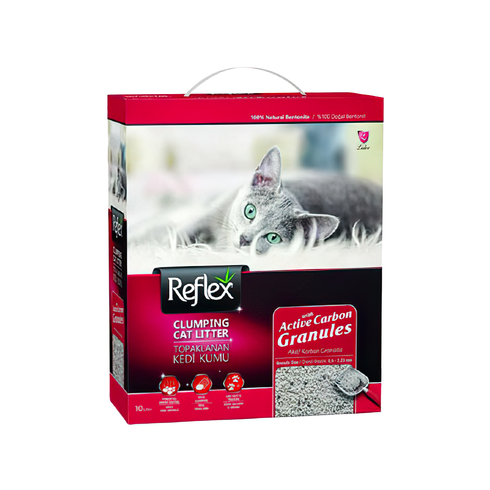 Reflex Topaklanan Aktif Karbonlu Granül İnce Taneli Kedi Kumu (10 L), kedilerinizin tuvalet ihtiyaçlarını karşılamak için özel olarak tasarlanmış yüksek kaliteli bir kedi kumudur. Yeni formülü ve gelişmiş özellikleri ile kedilerinizin temiz, sağlıklı ve konforlu bir ortamda tuvaletlerini yapmalarını sağlar.